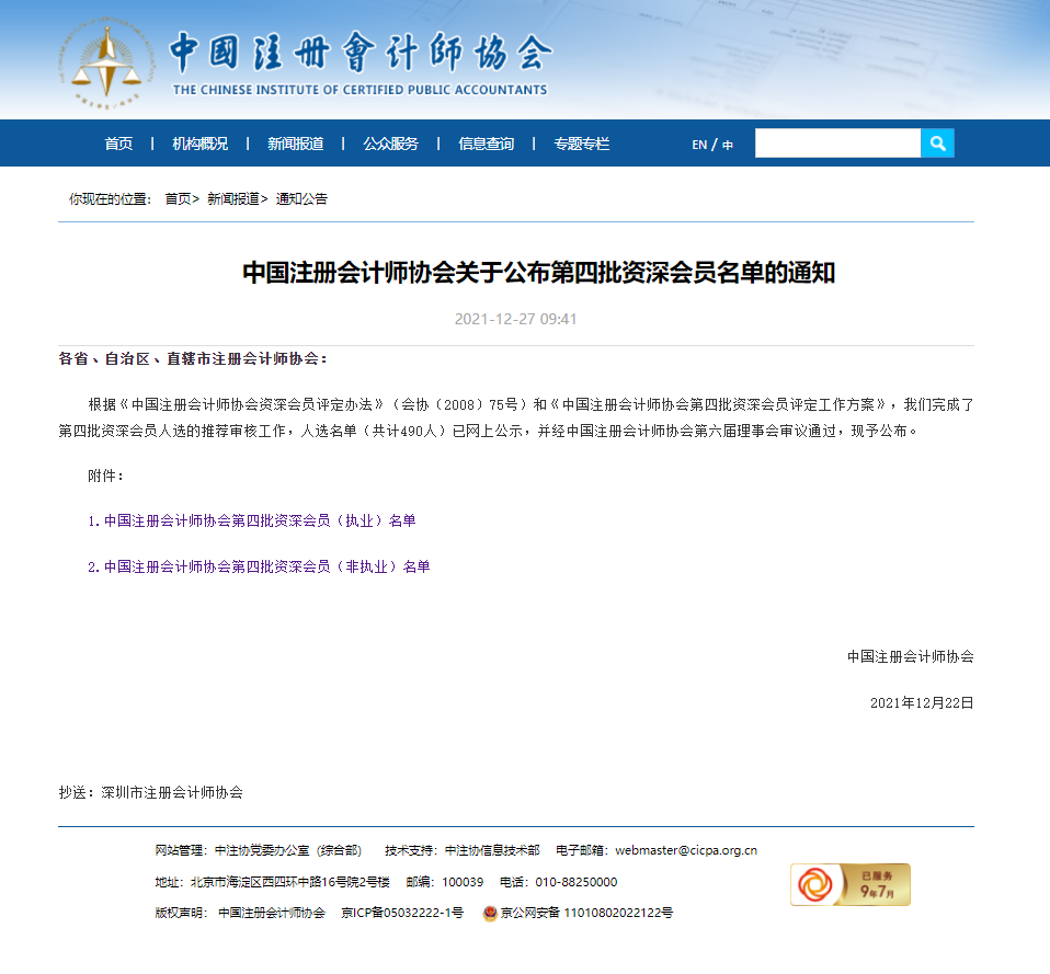 源自:中国注册会计师协会关于公布第四批资深会员名单的通知