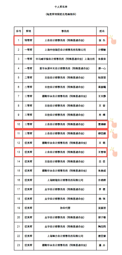 上海市注册会计师协会正式通报了第四届全国会计知识大赛第一赛程上海地区注册会计师行业比赛的表彰结果,并予以表扬。本所在此次大赛中,凭借全体参赛人员深厚的专业素养、出色的应变能力以及事务所高效的组织协调,荣获多项殊荣,实现了个人与集体成绩的双丰收,充分彰显了“上会人”的专业精神与进取风貌。